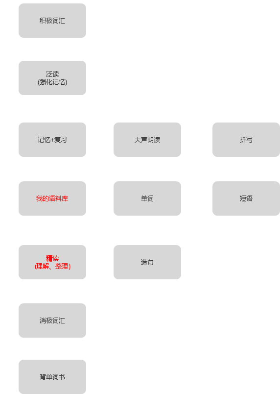 至于听、说和写,准备等词汇和阅读搞定后再针对性强化训练,因此放到后面再画。