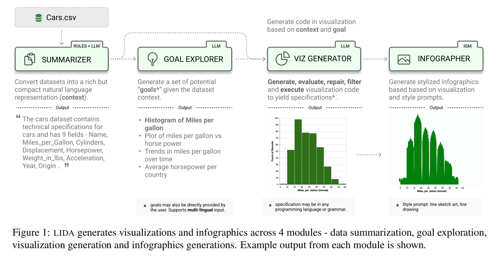 这里推荐大家看一下LIDA 这篇论文,目前做得比较好的 AIGC 金融工具,比如 FinChat、Pluto 等,其实现思路上,都能看到这篇论文的影子。