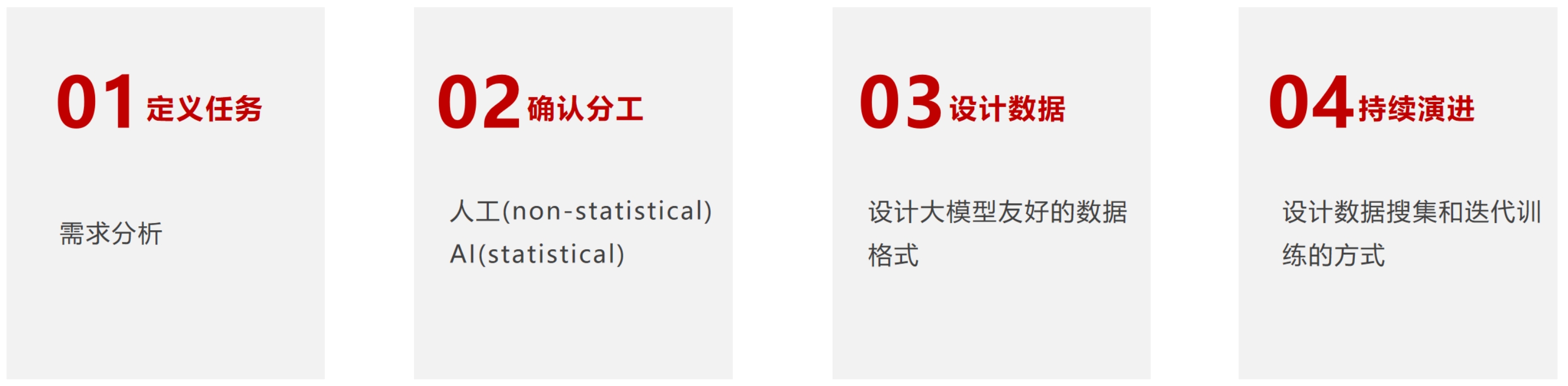 在模型训练阶段,此时还没有大模型介入,开发人员需要做的工作包括模型训练人员一起定义大模型友好的数据格式、提供训练数据、标注数据等,如下图所示: