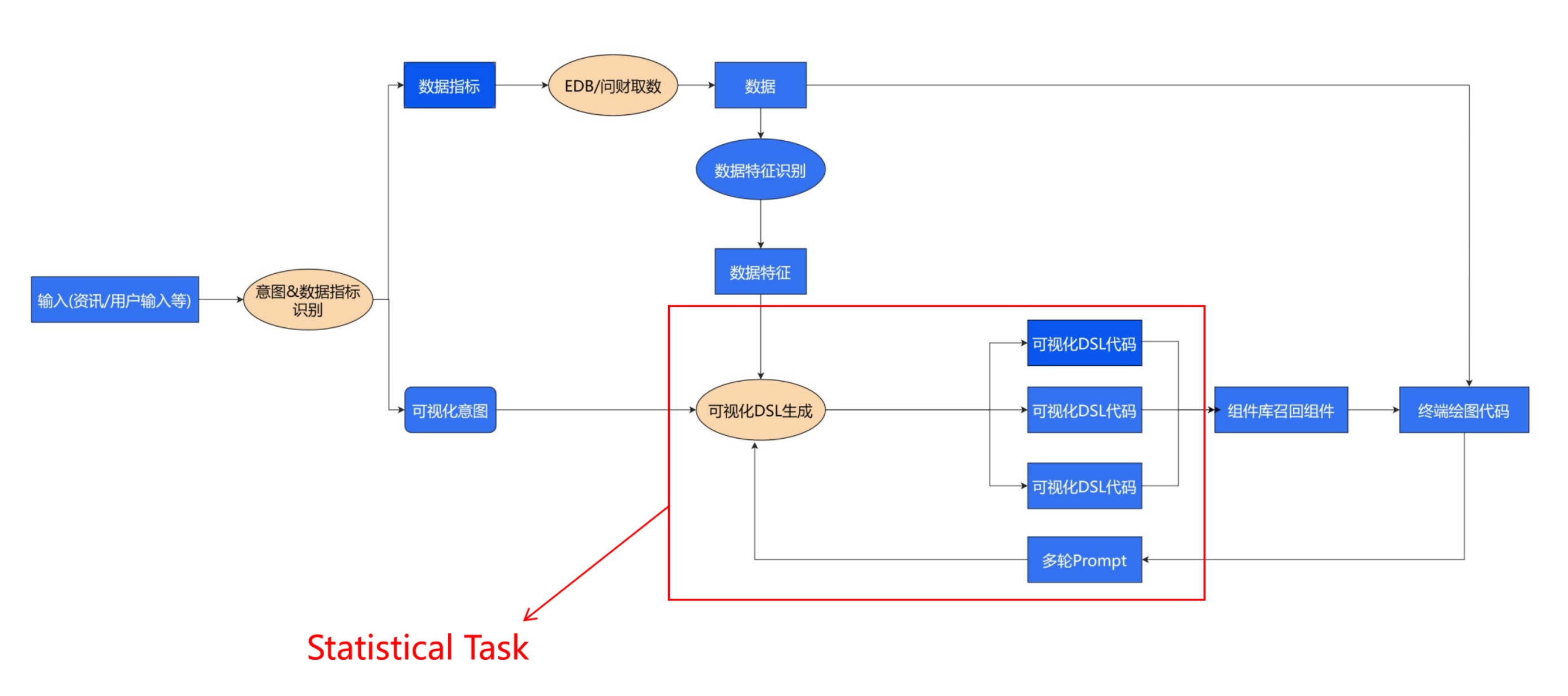 · 当 AI 模型由完全生成代码任务转变为仅完成图表推荐和数据特征分析任务后,实际上解决了上游的业务问题,但下游的组件问题形势严峻,由 AI 代码生成回归到规则匹配模式,实现了产品智能化的同时,如何解决可视化组件在技术层面缺乏智能化的问题?